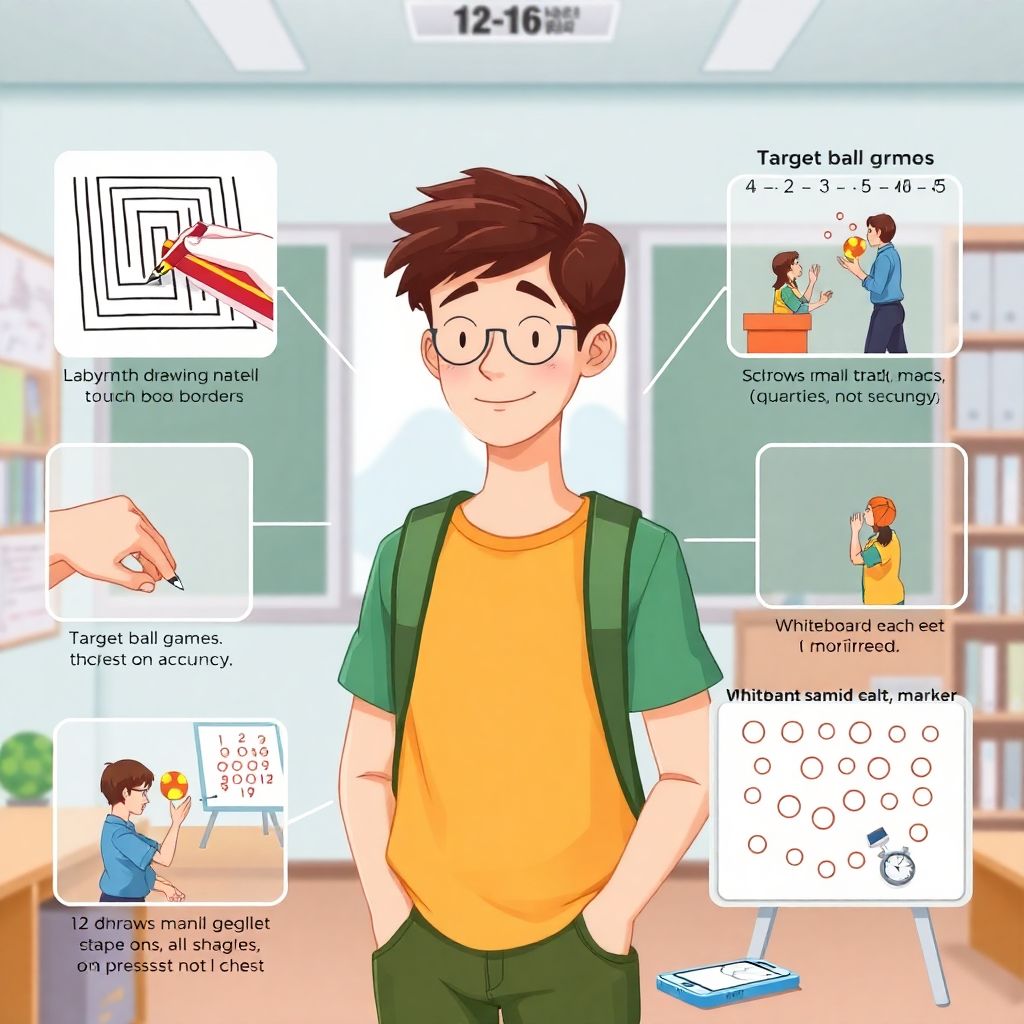 Если разложить задачу по «технике безопасности», при упражнениях мы тренируем три ключевых параметра. Первое — точность позиционирования: насколько совпадает намеченная точка с реальным положением руки или предмета. Второе — скорость сенсомоторной реакции: время от появления стимула (визуального сигнала, движения объекта) до мышечного ответа, обычно у подростков в норме это 200–250 миллисекунд. Третье — устойчивость мышечного контроля: способность сохранять нужное напряжение без дрожи и срывов, поддерживая движение в узком диапазоне. Любая продуманная программа должна касаться всех трёх, а не только «быстроты реакции».